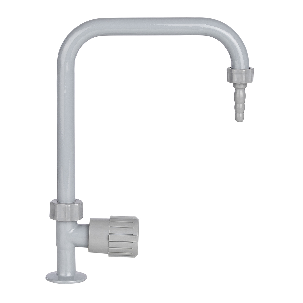 Nozzles are attached to the spout with a swivel nut, thus preventing the hose from twisting.
